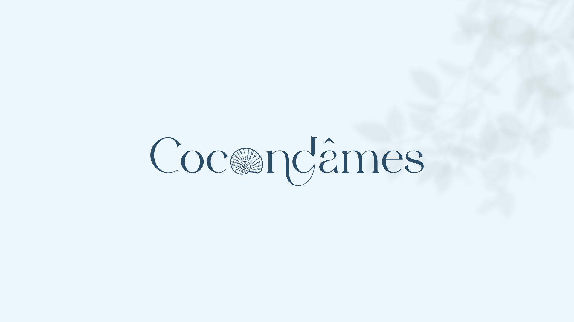 Le mot Cocondâmes évoque la fusion du cocon protecteur et de l’âme sensible, deux dimensions centrales de la relation parent-enfant. Le symbole central, inséré à la place du o, est une coquille en spirale